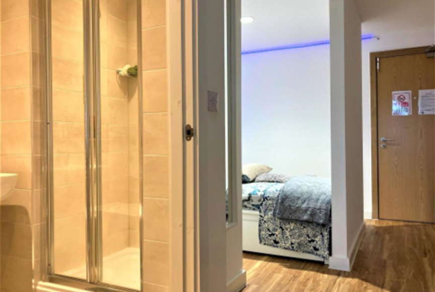 Beautifully presented studio apartment with onsite gym, open plan layout (10th floor) - With views over Manchester city centre and beyond Modern fully fitted kitchen with appliances.